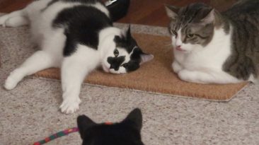 Boo Year 2 # 158 – A Plastic Bed For Hydrox, A New Scratching Rug, A Fight In The Hall