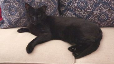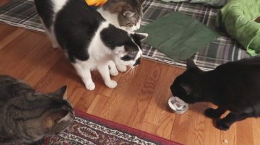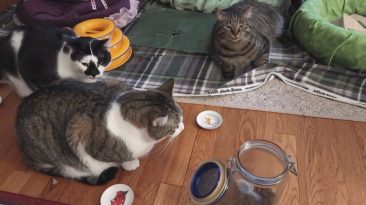 Boo Year 2 # 135 – Hello Blackie, Relaxing With The Cats, Trixie Dried Fish Treats
