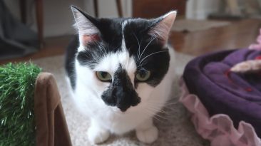 Boo Year 2 # 123 – Boo’s Cat Tower Routine, An Error On The Auto Feeder, Freeze Dried Whitefish