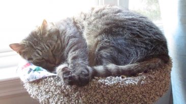 Boo laid down in one of the round cat beds for the very first time. The cats tried some sweet potato baby food in their dinner. Boo’s fur was sparkling in the sun. The...