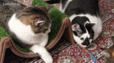 Splash and Simba are both beautiful cats. Although Hydrox is now brave enough to come to the back door, he has no desire to come into the house. He runs away when the...