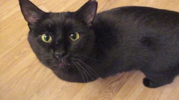 The cats ate their breakfast separately – Boo upstairs and the other cats downstairs. Hydrox ate breakfast under the tablecloth on the patio table. Boo got lots of...
