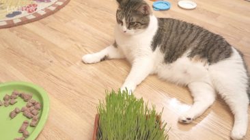Boo Days 409 and 410 Stella loves sleeping on the turbo scratcher. The cat grass is growing nicely. Simba got brushed. The cats continue to learn how to use the tablet...