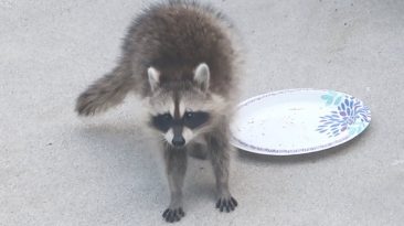 Day 368 The cats were served breakfast on their old party platter. They all ate together from it. Boo doesn’t know when to stop eating so I have to pick him up and...
