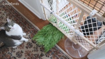 The cat pizza was sent to The Lucky Ferals from George Senda. Please check out his channel at ; Splash now likes to lay on the kitchen floor. The cats like to hang out...