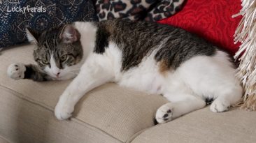 Boo loves belly rubs. The cats got fed on Valentine’s Day plates. Stella was laying on the cat grass outside of Boo’s door. Simba’s a pretty boy. Hydrox loves to lay in...