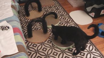 Boo loves his arches. Stella loves to spend time on top of the cat tower. Simba chewed up the mouse. This was Day 115 of training and socializing this feral cat (Boo)...