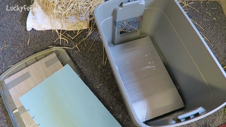 This is how I insulated the feral cat shelter that was made out of a large plastic storage bin once the cold winter weather arrived. I used a sheet of insulation from Home Depot, a box cutter, and some duct tape. It was quick and easy to do.