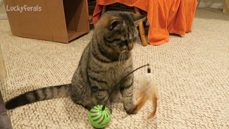 Cat reacts to the SmartyKat Feather Whirl Electronic Motion Cat Toy.