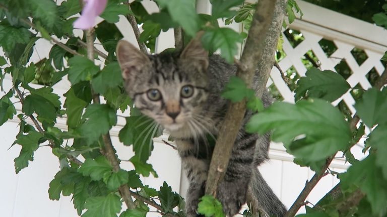 The feral kittens have learned how to climb the hibiscus tree.