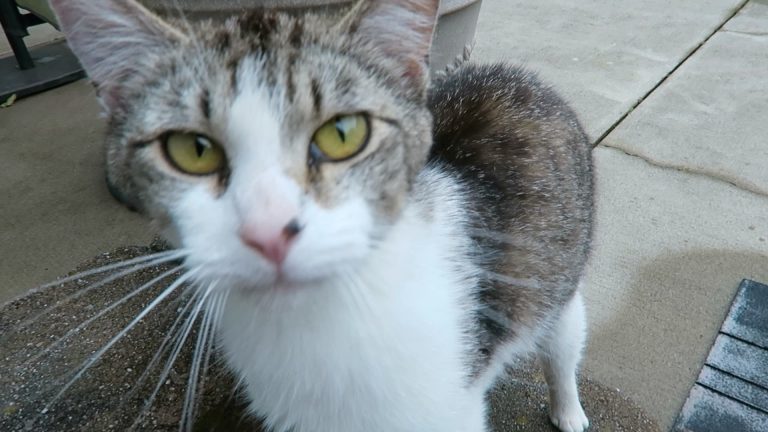 There’s a friendly feral cat in my yard. Who doesn’t like watching a cute cat? This one likes to meow. This was not her first time in my yard. I had been interacting with her for several weeks/months and giving her food and water.