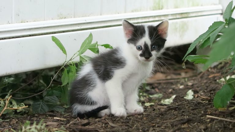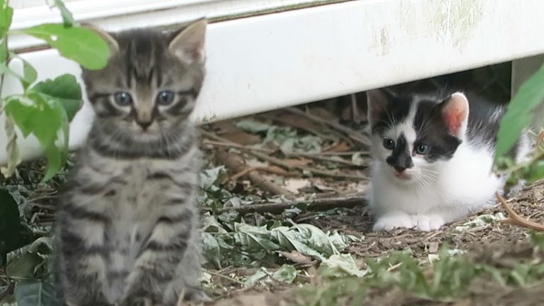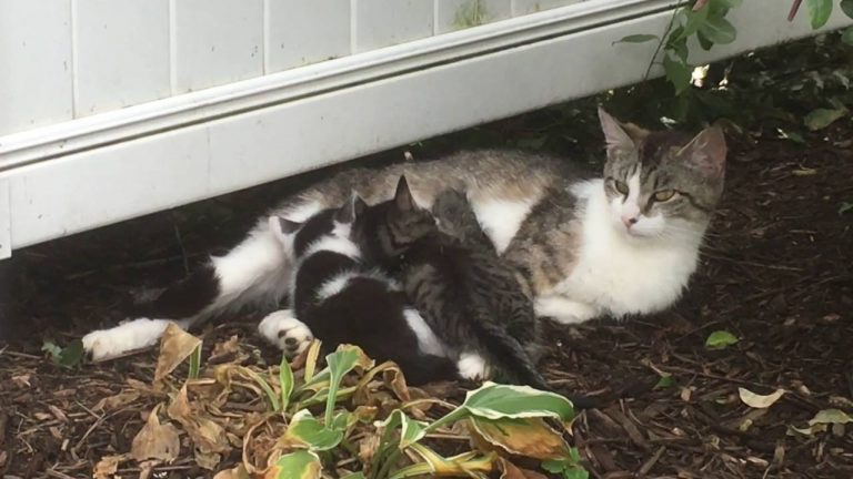 Two little feral kittens in my back yard with their friendly feral mama cat. They were about 4 or 5 weeks old when this was filmed. Aren’t they cute?!