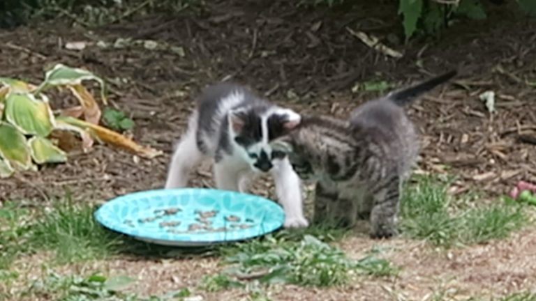 Cute Feral Kittens Explore Plate Of Food For The First Time