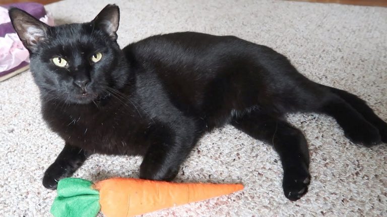 The cats got brushed before breakfast. The cats had a freeze-dried rabbit nugget as an Easter treat. It was mail time. Thank you Zoa and Bad Billy for your presents. Stella was hanging out in her cardboard cat house. Boo was hanging out on a chair. The cats got Easter carrot toys.