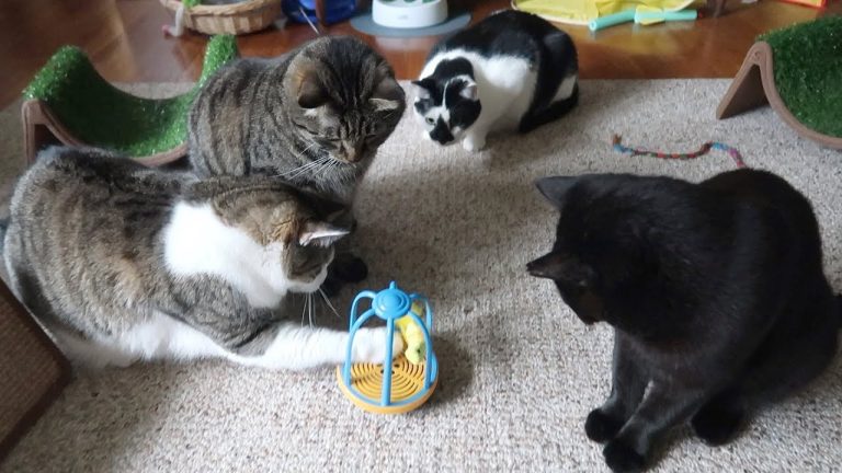This is what happened when the cats played with the Bird In A Cage electronic cat toy for the first time. The Bird In A Cage toy can be purchased on Amazon at