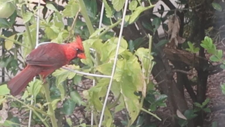 This is what happened when I looked outside and saw a cardinal on my tomato plant