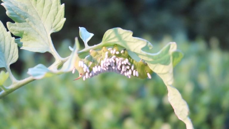 I noticed that a few of the tomato plants on my patio were missing leaves. I thought deer were eating them. However, upon further inspection, this is what I discovered….