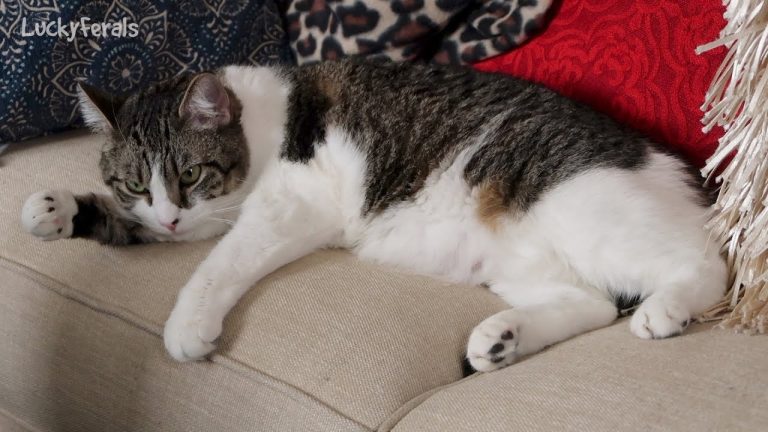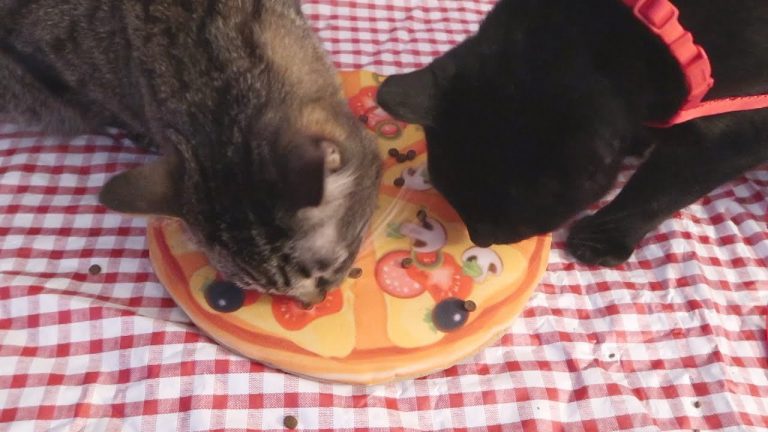 The cat pizza was sent to The Lucky Ferals from George Senda. Please check out his channel at ; Splash now likes to lay on the kitchen floor. The cats like to hang out on the pizza box. Boo was laying on the cat grass. There’s catnip all over Boo’s day bed from his...