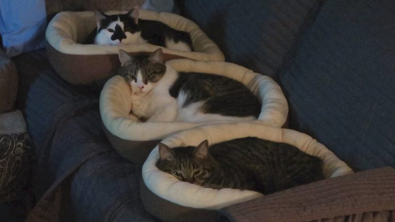 Boo enjoys laying on the cat towers and he also enjoys getting petted. He loves doing both at the same time. Music: Let’s Do It by Topher Mohr and Alex Elena. Simba and Stella love eating food. Stella likes to lay on top of the cat grass. Simba thinks he’s a chicken laying in...