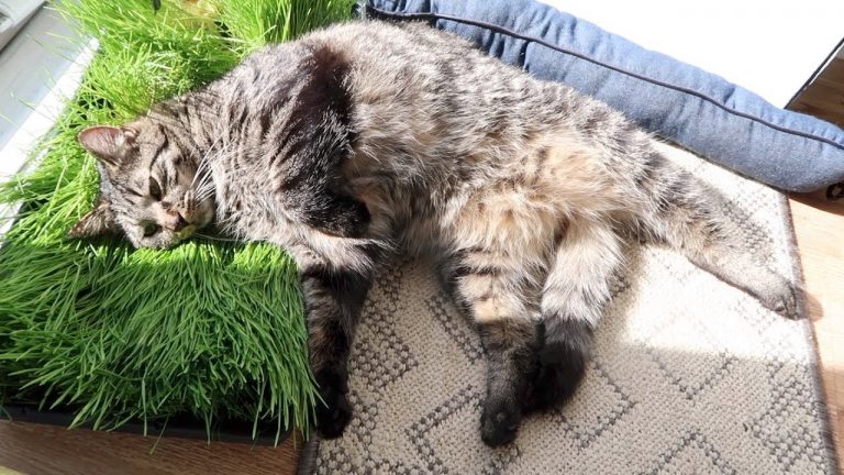 The cats all ate canned food because I forgot to defrost the raw food. The cats enjoyed their cat grass by the back door. Boo loves canned food more than raw food. Hydrox was laying right next to the window near the cat tower. Boo had more harness training. Everything filmed after...