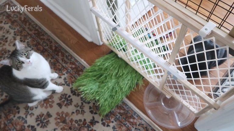 Stella has been spending more time closer to Boo’s door. All of the cats love to play with the Cat Charmer cat toy. Boo had more harness training and ate crunchies on the stairs. He made it all of the way to the bottom. When Boo wears his harness, he turns into Super Boo! Cat...
