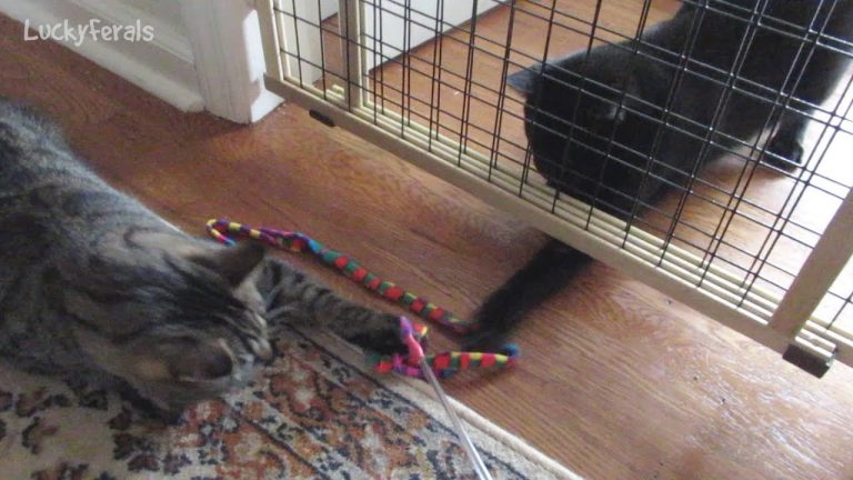 The Cat Charmer cat toy was given to the cats for the first time to help reunite them by playing together under the pet gates. They all love playing with the toy. Dry food is now being given to the cats in the kitchen on a community tray. Splash loves cuddling with his mother Stella. This...