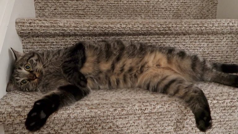 All of the cats love Trader Joe’s canned Tuna For Cats. Stella and Simba love it when I poke a toy under the rug for them. Boo loves laying on the bed. This was Day 116 of training and socializing this feral cat (Boo).
