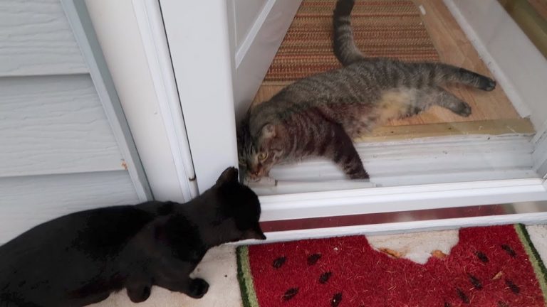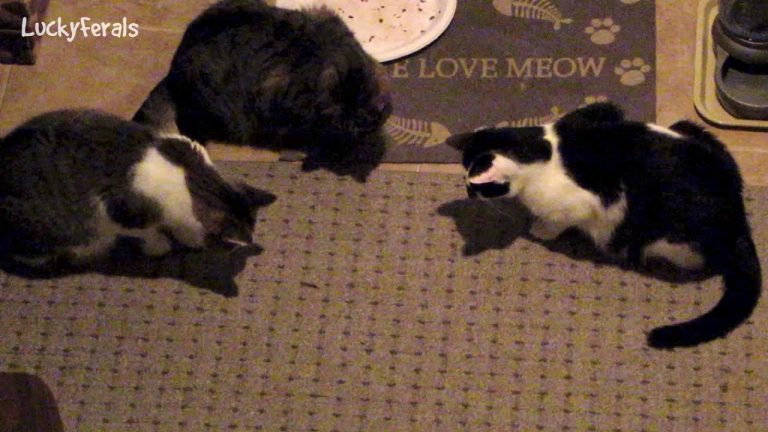 When humans are away, the cats come out to… This is Day 32 of training and socializing this feral cat. Arlo Q Security Camera on Amazon: