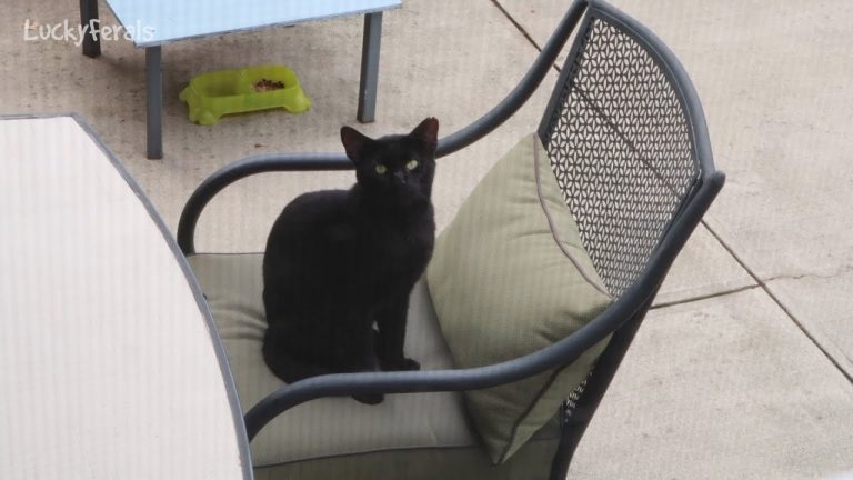 Boo has started to rub up against everything! This is the 11th day that Boo came around for his meals and the 11th day of training and socializing this feral cat.