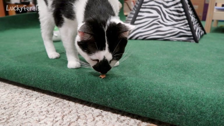 Boo did it! A new first! He also got a new play mat. This is the 14th day that Boo came around for his meals and the 14th day of training and socializing this feral cat.